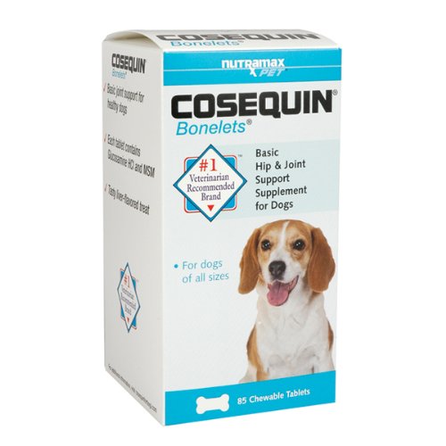 This is a joint support supplement for healthy dogs to help keep them active. If you notice your pet slowing down when climbing stairs or rising from a down position, we recommend Cosequin DS, the most advanced protection and the original researched formula. Each tablet contains Glucosamine HCL and MSM. Basic joint support for healthy dogs. Tasty liver-flavored treat. Directions: Cosequin Bonelets can be given all at once or divided throughout the day. Cosequin Bonelets can be administered as a treat or crumbled in your pet's food. Number of bonelets can be increased at any time depending on your pet's needs. 15 lbs and under - 1/2 chewable tablet daily, 16-30 lbs - 1 chewable tablet daily, 31-60 lbs - 2 chewable tablets daily, 61-100 lbs - 3 chewable tablets daily.